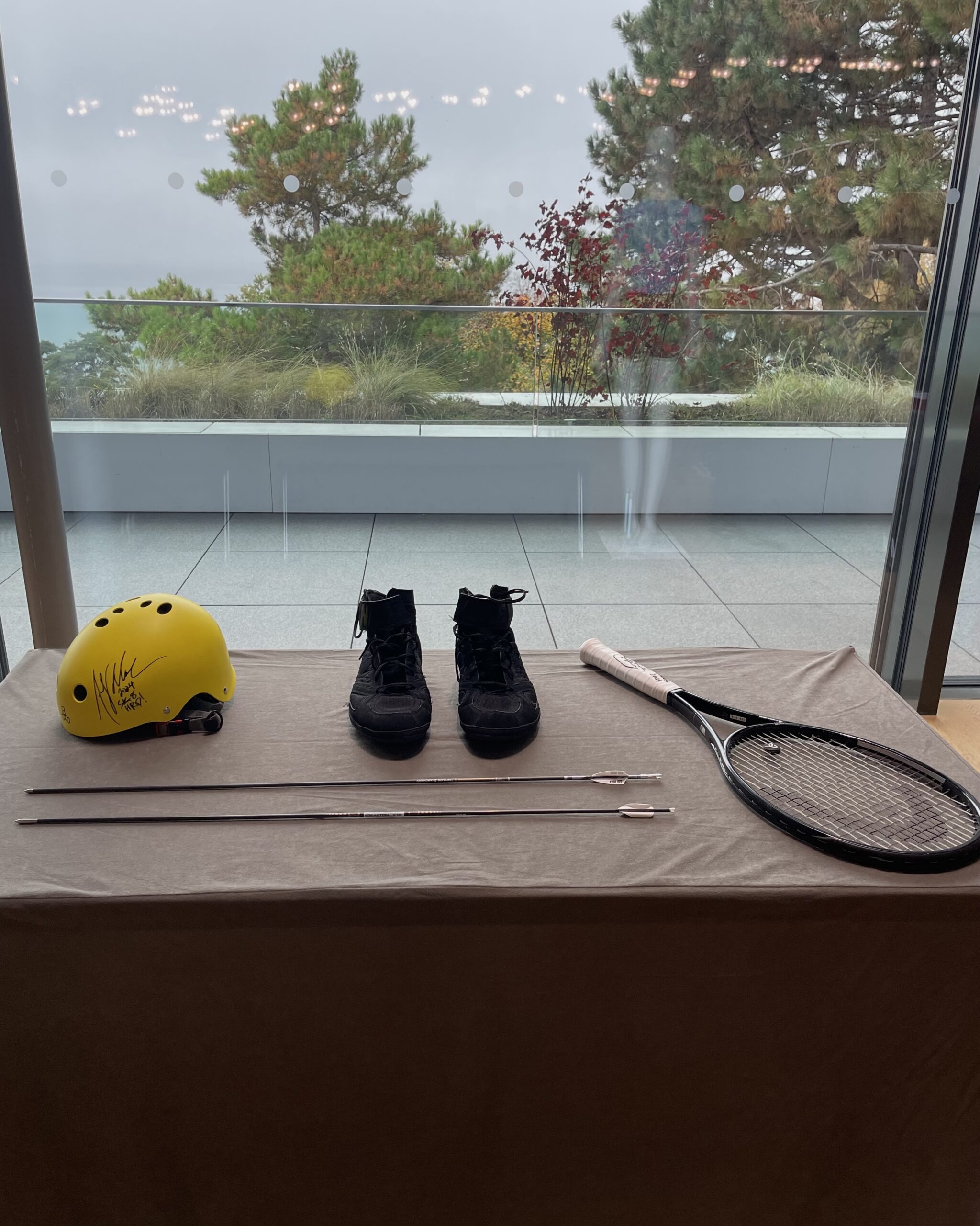 These artifacts are collected from members of the Olympic community throughout the Games, with a large portion donated generously by Olympians themselves. This year alone, the museum acquired 120 new pieces. Among these acquisitions are: the uniform worn by the Mongolian delegation at the opening ceremony, the leotard worn by Rebeca Andrade (Brazil), the jersey of Sifan Hassan (Netherlands), a basketball signed by the USA men’s team from the finals, the outfit of Julien Alfred (St. Lucia), the first medal from Saint Lucia, the jersey of Veddriq Leonardo (Indonesia) from speed climbing, a racket used by Novak Djokovic (Serbia), the leotard of Darja Varfolomeev (Germany), Andy Macdonald’s helmet (Great Britain), the oldest skateboarder in Olympic history at 51 years old, the shoes of wrestler Mijaín López Núñez (Cuba), Caroline Marks’ surfboard (USA), and the arrows of Damien Letulle (France),  the first Olympian archer (Atlanta 1996) and Paralympian (Paris 2024). Additionally, the “Golden Voyager” from the closing ceremony, designed by Kevin Germanier, is now part of the collection.