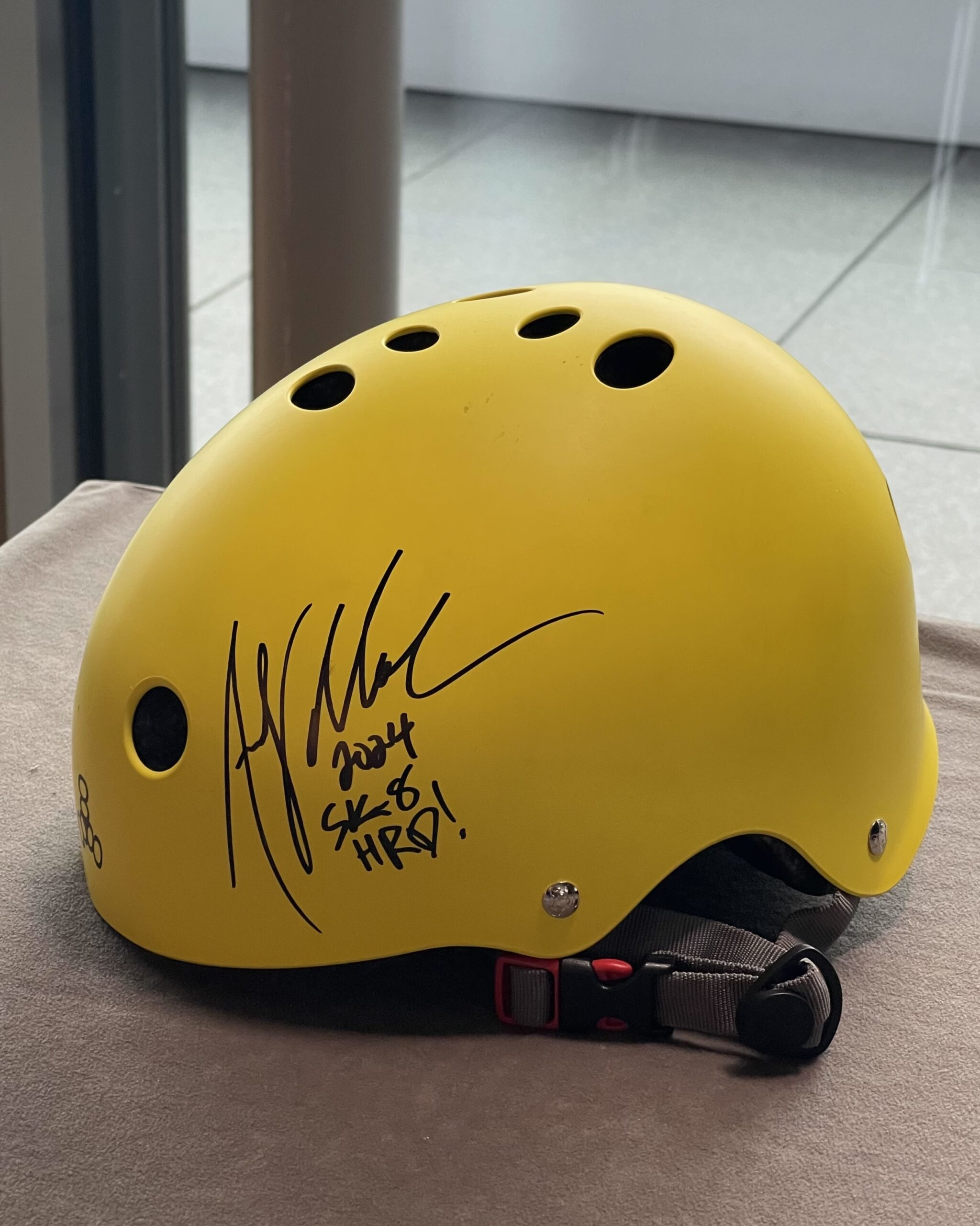 Artifacts from the 2024 Olympic Games: Skateboarder Andy Macdonald’s helmet, Wrestler Mijaín López Núñez’s shoes, Archer Damien Letulle’s arrows and Novak Djokovic’s tennis racket